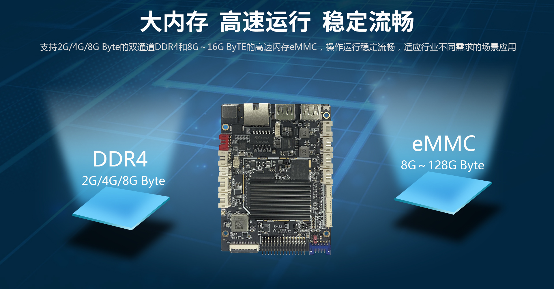 2G/4G/8GB DDR4和16G ~ 128GB eMMC,