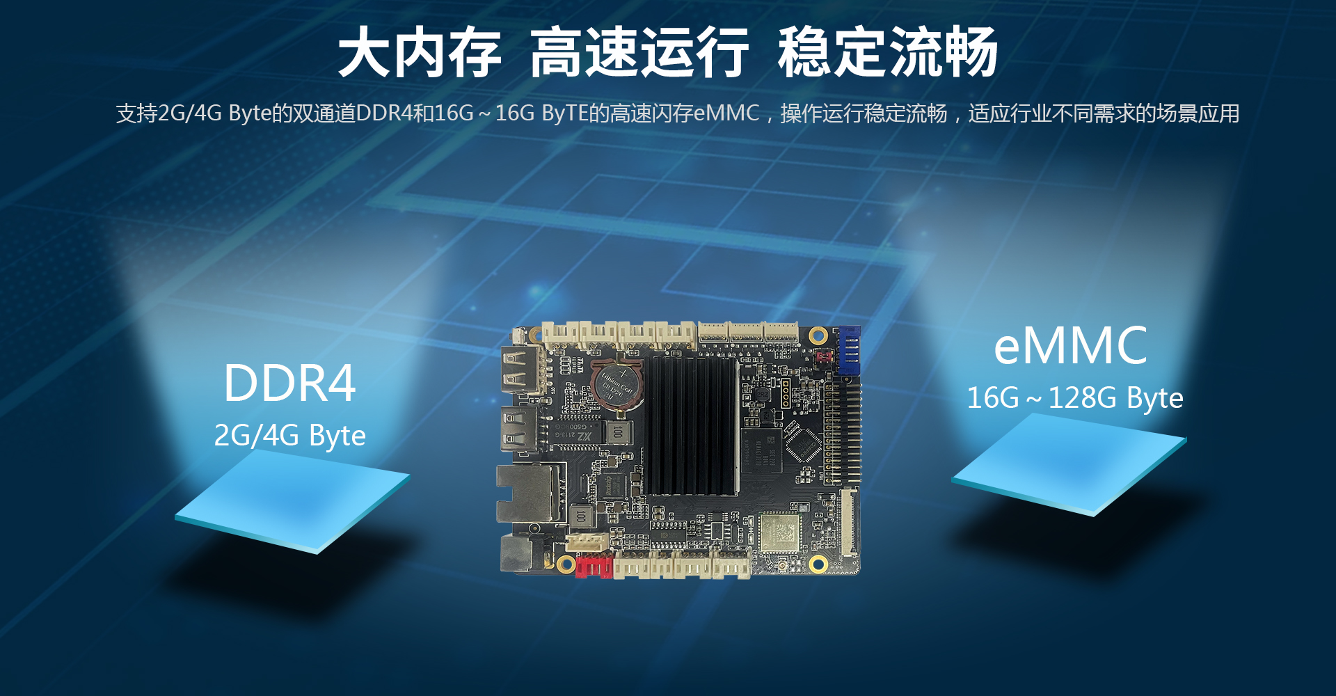 1G/2G/4GB DDR3和8G ~ 128GB eMMC,