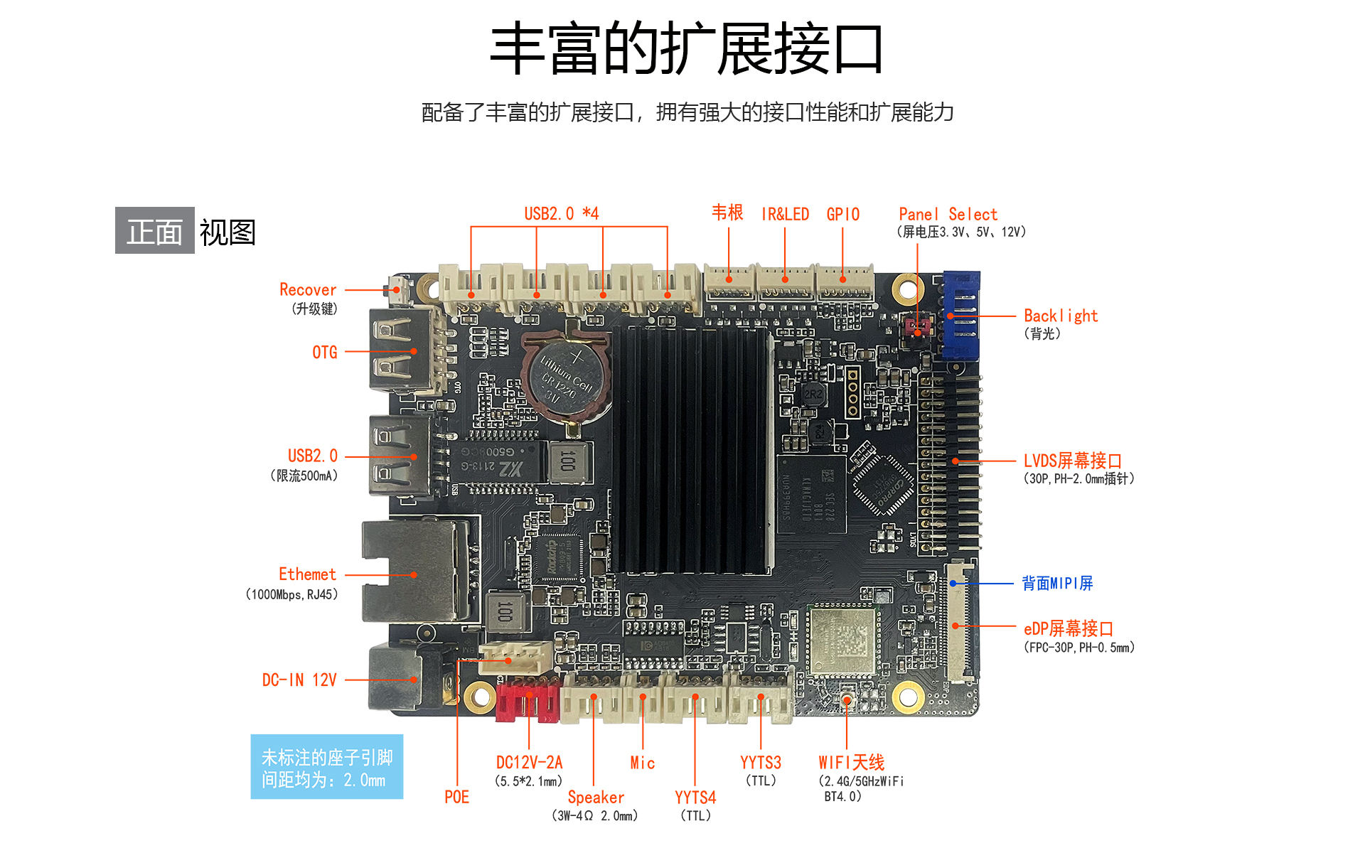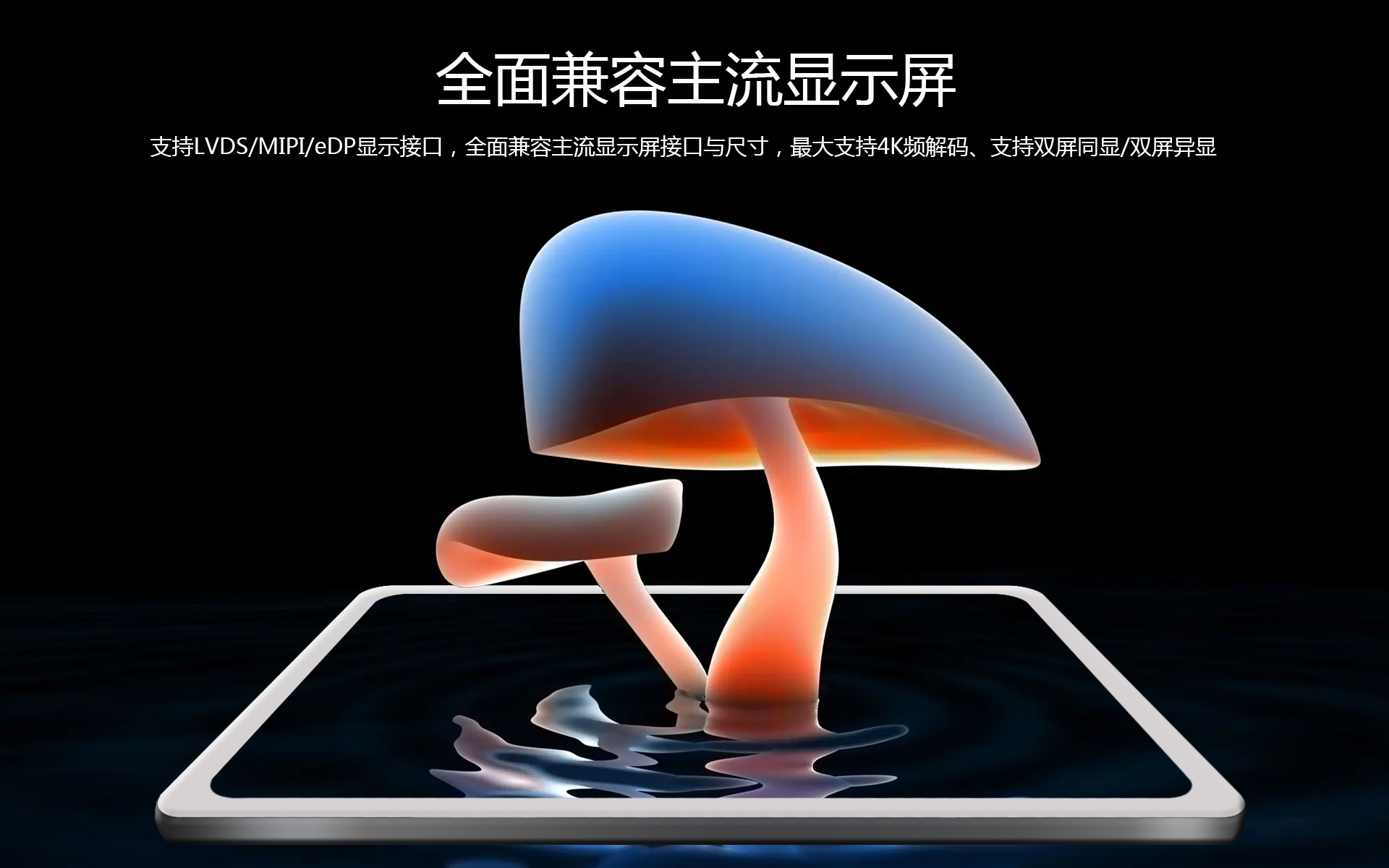 显示输出1个单/双路LVDS、1个eDP、1个MIPI